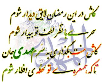 خدایا بار دگر ماه رحمت خود را نازل کردی بر بنده حقیرت. باز تشنگی، باز گرسنگی، باز عطش، باز حرص و ولع، باز انتظار، باز اذان، باز سحر، باز ..... و هر سال که میگذر بسیار تشته تر، گرسنه تر، حریص تر، منتظرتر و ... از سال قبل.