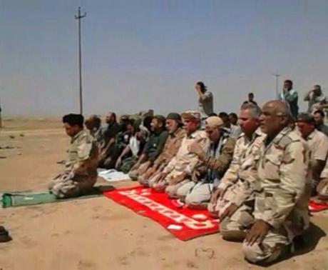 با محاسن سفید، کلاه آفتاب گیر، پیراهن و شلوار خاکی و آستینهای بالا زده؛ سردار قاسم سلیمانی در کنار نیروهای عراقی نماز میخواند، عکس میگیرد و اسلحه به دست در "یزله" و شادی آنها شریک می شود.